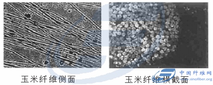 玉米纤维和涤纶同属聚酯类,但涤纶是芳香族聚酯化合物,而玉米纤维属于脂肪族聚酯化合物。常见玉米纤维侧面及横截面一般呈非完整的圆形。
