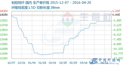 4月20日粘胶短纤商品指数为104.03,与上一日持平,较周期内最高点110.11点(2015-11-18)下降了5.52%,较2015年03月19日最低点86.73点上涨了19.95%。(注:周期指2013-09-01至今)
