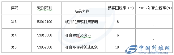 关于《2016年关税调整方案》国务院已批准,自2016年1月1日起正式实施。其中,麻类产品进口商品暂定税率调整如下:
