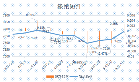 本周涤纶短纤期货震荡为主,收出小阳线,最终收盘在7434点,较上周上涨24点。
