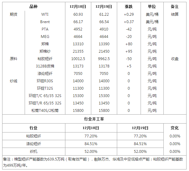 纯涤纱:后期来看,涤纶短纤场内上下游均无明显利好支撑,市场或呈现缓幅下跌的走势,纯涤纱成本端暂无明显上行助力。加之下游纱企适度补仓后,当前多有一定原料库存,下游采购回归理性场内询采气氛转弱,且临近年底,下游织造行业面临停工,需求逐步萎缩预期下,部分纱企或将重启优惠以保持库存处于合理水平。