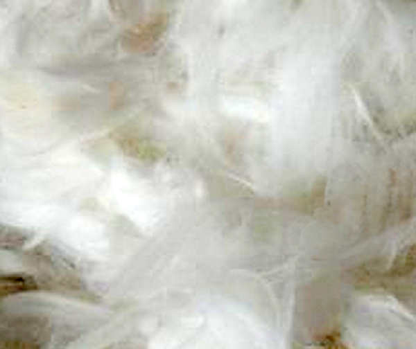 又称绒毛。是长毛兔被毛中最柔软纤细的毛纤维,呈波浪形弯曲,长5~12厘米,细度为12~15微米,占被毛总量的85%~90%。兔毛纤维的质量,在很大程度上取决于细毛纤维的数量和质量,在毛纺工业中价值很高。