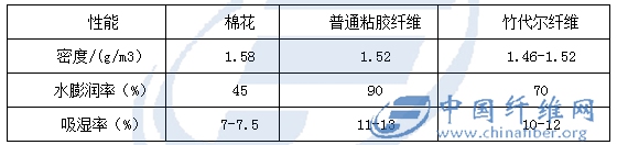 竹代尔纤维与普通粘胶纤维相比,干湿强得到明显改善,干湿长也大大降低,湿模量达到甚至超过了棉纤维的水平,水膨润率低于粘胶,所得纱线缩水率明显降低,沸水收缩仅为1%左右,而普通粘胶纱线沸水收缩率高达6.5%。竹代尔纤维织物尺寸稳定性、特别是湿态稳定性好,不易缩水起皱。