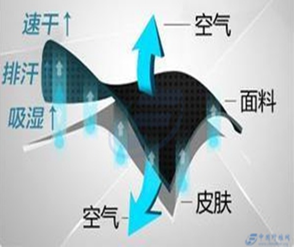 具有异形断面结构,其纤维间隙较一般断面纤维的间隙大。异形纤维利用沟槽的毛细效应,将皮肤表面的汗水和湿气吸收,输送到织物表面并散发掉,形成吸湿快干之功能。