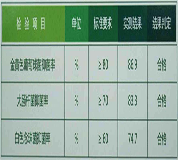 检验及判定标准:FZ/T  73023-2006(AAA)以上为洗涤50次后的检测结果