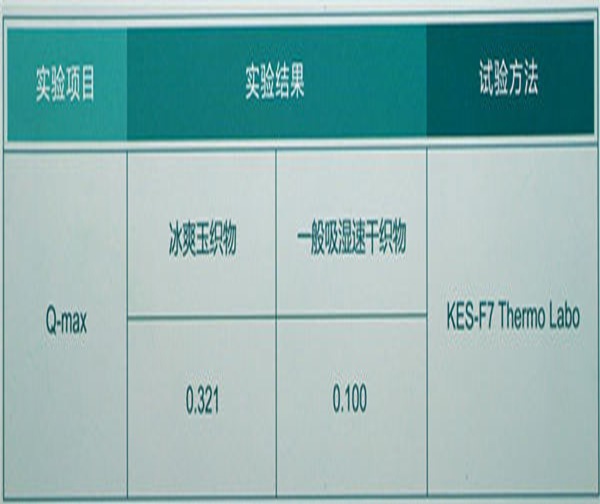 结果显示冰爽玉布样Q-max达0.321,比一般吸湿速干织物高0.221之多