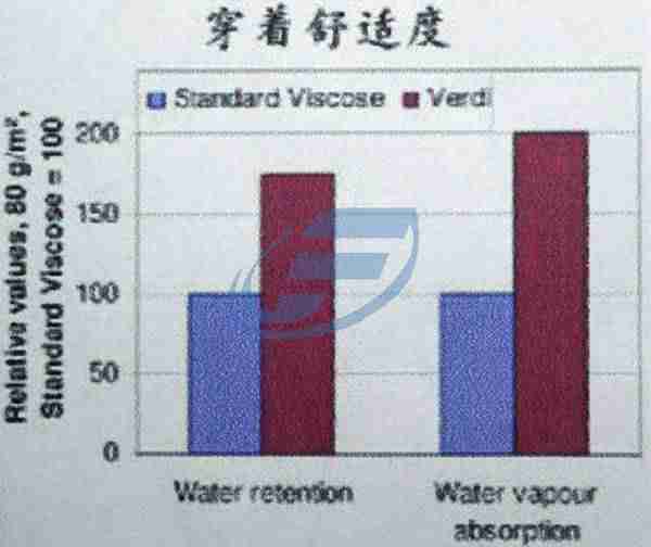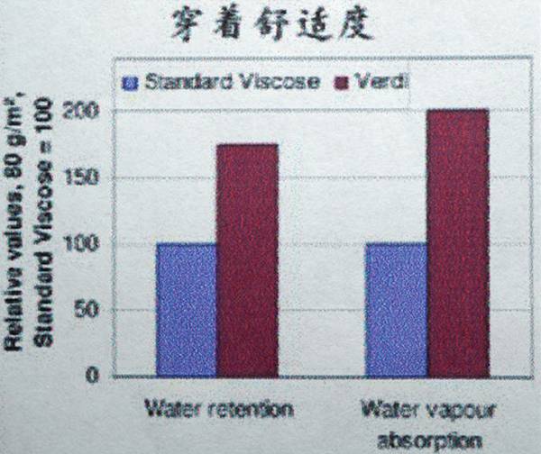 Verdi具有2倍于普通粘胶纤维的水汽吸收量,1.6倍的水吸收量。