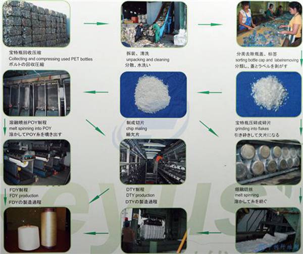 Reyus是上海南德纺织科技有限公司专有品牌产品,也是将宝特瓶回收(Recycle)、再利用(reuse)的再生涤纶纤维。宝特瓶与一般涤纶的材质相同,都是聚对苯二甲酸乙二酯(PET Polyethylene Terephthalate),是以对苯二甲酸(Terephthalate acid) 和乙二醇(Ethylene glycol) 聚合产生的聚合物。