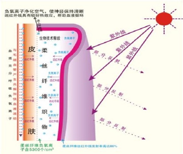 柔丝纤维经国家纺织工业质量监督中心检测,负氧离子浓度5300个/CM,如同森林边的空气质量,可想像如把森林穿在身上,对人体的免疫力很有益处。