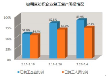 抗击疫情复工复产形势趋向明朗。纺织企业同其它企业一样,二月底有望基本复工,开车率逐渐提升,真正的节后生产在三月份体现。对于总的形势评析,“新冠肺炎”疫情防控对于产业负面影响集中于一季度,而整个三月份,纺织市场预计处于整理恢
