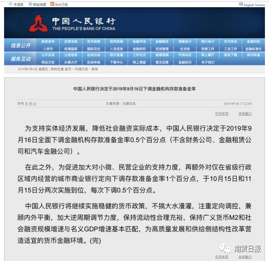 9000亿来了9月6日,央行表示,为支持实体经济发展,降低社会融资实际成本,中国人民银行决定于2019年9月16日全面下调金融机构存款准备金率0.5个百分点,此次降准释放长期资金约9000亿元,其中