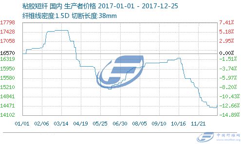 本周粘胶短纤相对平静,厂家报价平稳,产品小幅动销,市场价格止跌回稳,业内人士利空心态略有好转,截止目前,1.5D*38mm的粘胶短纤市场均报价在14420元/吨,同比下跌6.49%,高端厂家价格主流执行价14600-14700元/吨。预计