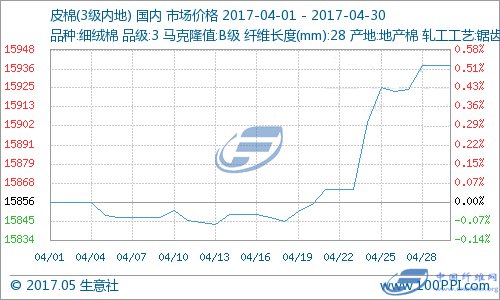 从纺织行业来看,内外贸利好数据但持续度有待考证,且供给过剩、订单下降以及大宗商品市场整体弱势等因素困扰,预计5月棉花价格稳中偏暖,价格有望维持在16000元/吨上方运行。