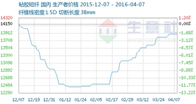 4月7日粘胶短纤商品指数为104.03,与上一日持平,较周期内最高点110.11点(2015-11-18)下降了5.52%,较2015年03月19日最低点86.73点上涨了19.95%。(注:周期指2013-09-01至今)