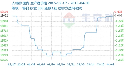 本周人棉纱总体表现价格小幅回落,目前人棉纱环定纺30S报价在18987.5元/吨,较上一周跌幅达0.13%。