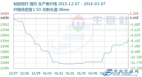 3月7日粘胶短纤商品指数为100.16,较上一日上升了0.96点,较周期内最高点110.11点(2015-11-18)下降了9.04%,较2015年03月19日最低点86.73点上涨了15.48%。(注:周期指2013-09-01至今)