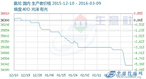 01一、锦纶DTY市场价格走势图02市场分析 据生意社价格监测显示,截止到3月8日,国内锦纶DTY 70D/24F主流价格报至16500-17500元/吨之间,较月初价格基本持平。目前国内锦纶市场