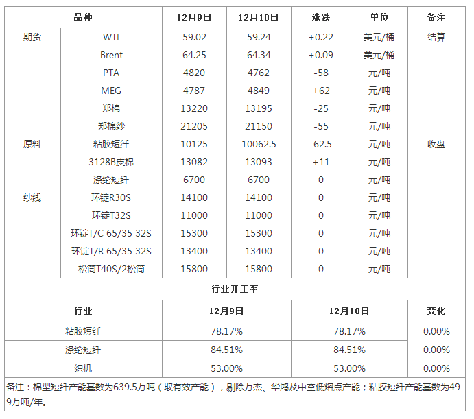 12月11日纤维早报,短期纯涤纱将延续震荡整理走势