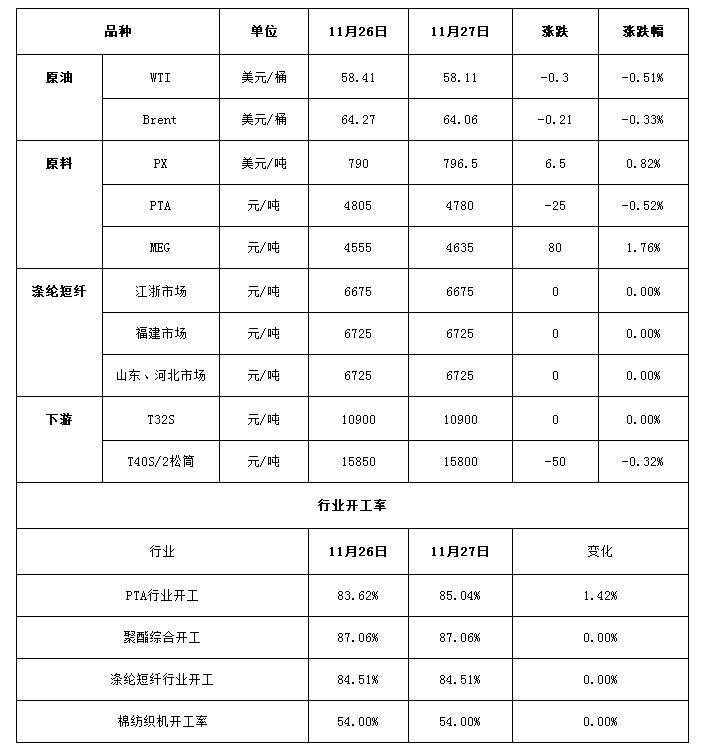 11月28日纤维早报,涤纶短纤短期价格存在一定支撑