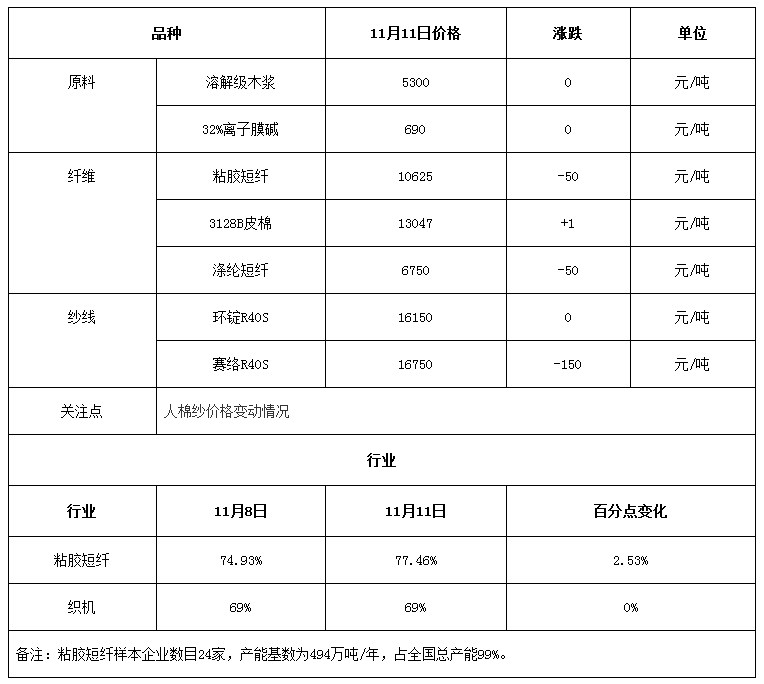聚酯类产品价格走势疲软,重心缓慢下滑,郑棉主力夜盘低开低走,粘胶短纤相关产品表现欠佳,自身下游人棉纱亦处于让价换量回款的状态下而无暇顾及原料采购囤货,粘胶短纤交易气氛欠佳局面下,价格预期依旧偏空。