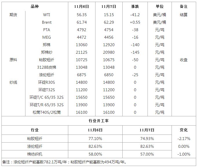 人棉纱:依照目前纺纱企业所持粘胶短纤库存来看,近期已开始对部分中端唛头刚需采购,而高端唛头从下周也临近刚需采购节点,但目前因人棉纱自身销售情况不佳,市场时有低价换量回款行为存在下,行业主流价格已连续被动下滑而部分品种加工费受压,亦或倒逼粘胶短纤价格下滑,而人棉纱自身年终临近收款压力增加,织造订单需求放缓状态下,仍或使得人棉纱频繁出现低价换量现象。