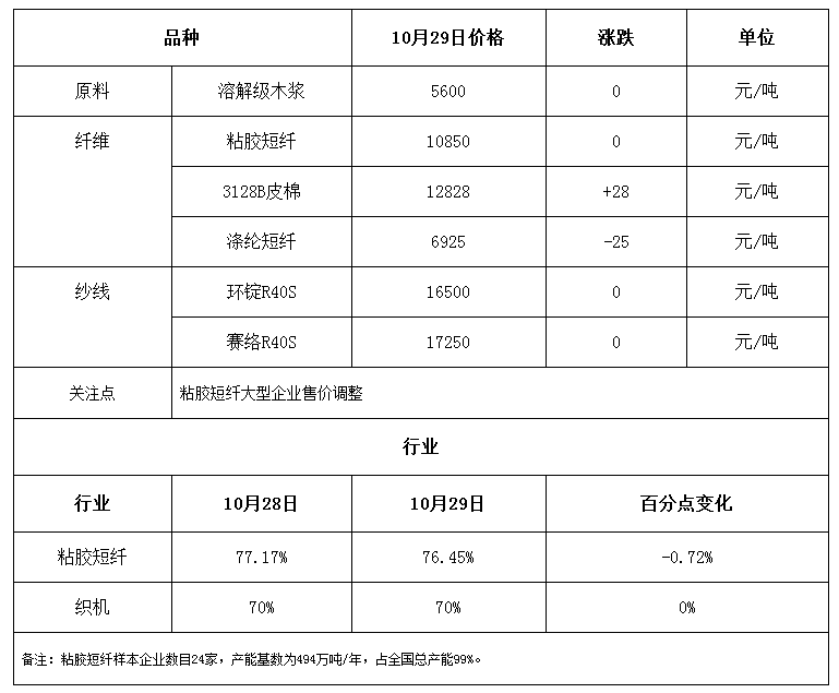10月30日纤维早报,粘胶短纤价格依旧存在偏弱预期
