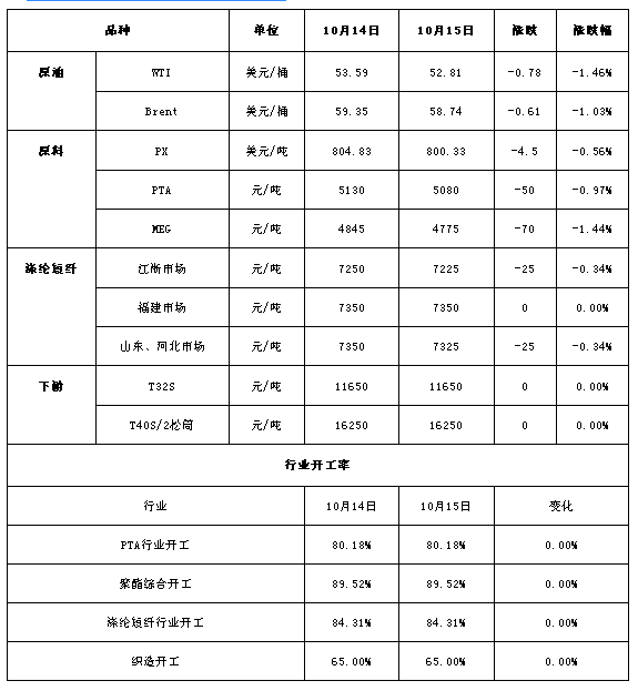 关注PTA加工费变化及后期装置检修及新装置投产情况对聚酯市场的影响;另外须关注涤纶短纤企业库存情况。