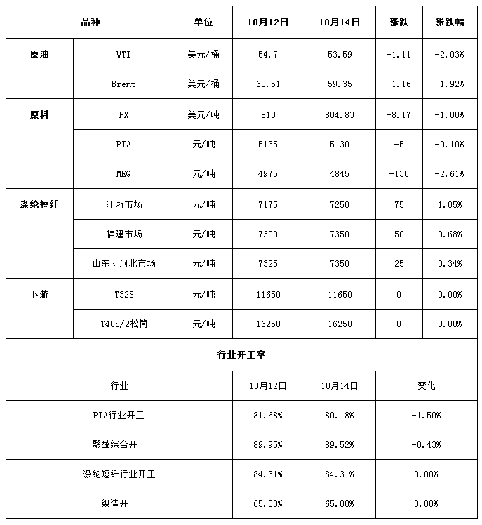 3. 昨日涤纶短纤及相关产品价格、开工变化