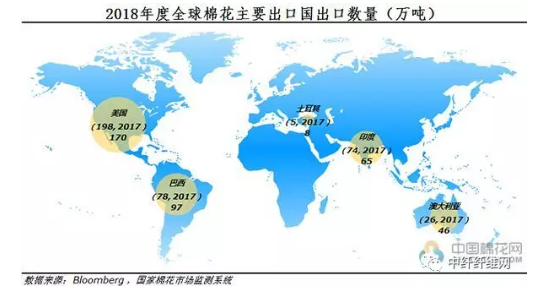 但我们来看2018年9月至2019年3月,五个主要棉花出口国2018年度出口量总和为基数,美棉出口占总量的44.2%,其余四国占55.8%,其中仅巴西和澳大利亚两国之和就占总到出口量的36.9%,已接近美棉的出口规模,这些数字证明,美国棉花确实在如今全球棉花供应中占主导地位。