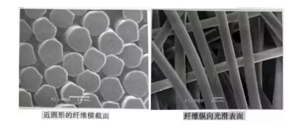 普通粘胶纤维复杂成型过程的不均匀性会使常规粘胶纤维的横截面呈腰圆形或无规则状,内部有孔洞,纵向有无规则沟槽。粘胶具有优良的吸湿性、易染性,但是其模量、强度较低,尤其是湿强度低。