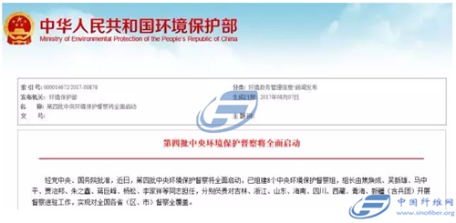 8月7日,中国环境保护部发布通知:第四批中央环境保护督察已于7日全面启动。此次,将有吉林、浙江、山东、海南、四川、西藏、青海、新疆(含兵团)8地方在7日至15日的一周内,陆续迎来中央督察组的进驻。