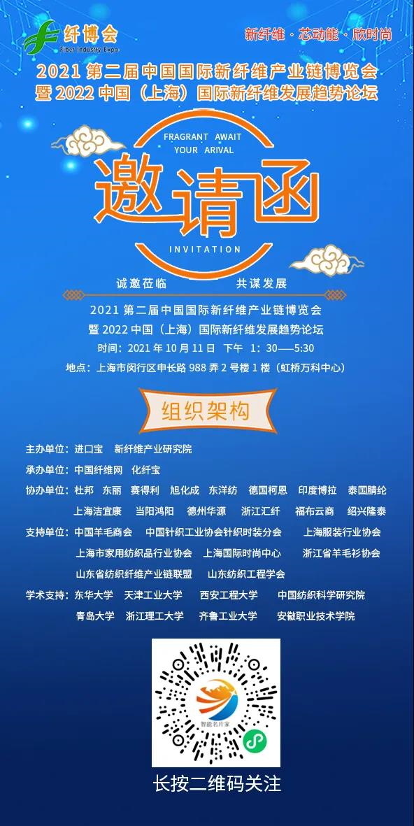 2021第二届中国国际新纤维产业链博览会暨2022中国(上海)国际新纤维发展趋势论坛,将于10月11日,在上海虹桥万科中心隆重举行。本次大会由进口宝、新纤维产业研究院主办,中国纤维网、化纤宝承办。活动将以“2022年中国国际新纤维发展趋势”为主要议题,由国际、国内知名专家、优秀企业为您分析新纤维发展趋势,活动采取线下论坛和线上展览展示结合的方式,欢迎广大纺织行业同仁积极报名参与,您将有机会和专家面对面交流,你也可以分享您的成果、经验。因为疫情原因,现场人员将控制在150人左右,想报名参加上海论坛的企业请提前报名,名额有限,额满为止。