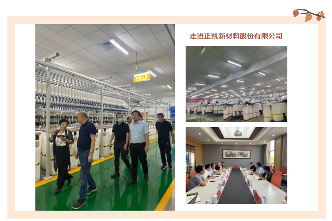 9月13日,2021第二届新纤维产业链博览会走枣庄纺织产业集群,在枣庄市工信局袁洪江局长和枣庄市科协李斐主任的陪同下一起参观正凯新材料科技有限公司的智慧工厂。