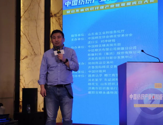 由山东省工业和信息化厅指导,中国棉花协会棉花贸易分会、进口宝、对冲研投主办,郑州商品交易所、齐鲁国际棉花交易中心联合主办主办的2021中国纺织产业风险管理大会暨山东省纺织纤维产业链联盟成立大会于2021年03月30日在济南盛大召开。大会共计300多人参与,其中参会工厂的数量到200多家。