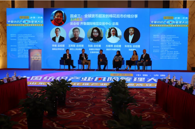 最后在齐鲁国际棉花交易中心总裁吴会俊主持下,路易达孚棉花部总经理李楠,翱兰(上海)商贸有限公司总经理王利军,新疆利华集团交易研究部总经理刘淼,嘉能可中国区棉花总经理方晓琴和瑞嘉国际总经理朱根生出席了全球货币超发的棉花后市价格分享的圆桌论坛,将会议带到高潮。