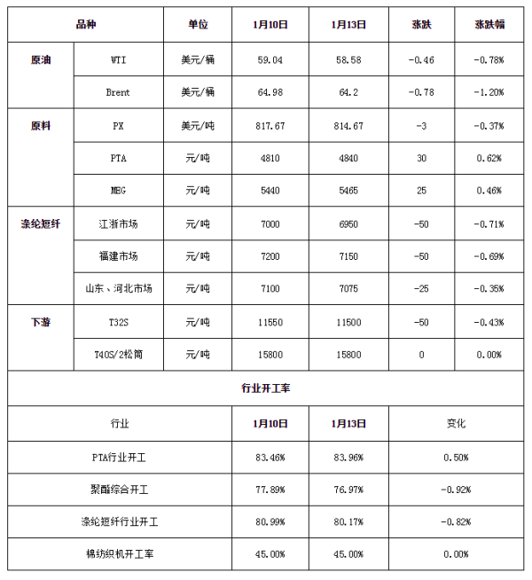 1月14日行情早报:涤纶短纤或仍有让利出货的可能