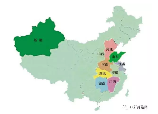我国棉区范围广阔,根据棉花对生态条件的要求,结合棉花生产特点,以及棉区分布状况、社会经济条件和植棉历史,将全国划分为三大棉区:长江中下游棉区、黄河中下游棉区和新疆棉区,三大棉区产量占全国99%以上。2015-2019年,三大棉区鼎足而立的格局已被打破,新疆优势独显,而内地面积大幅下降,2018年,黄河流域面积占仅13.65%,长江流域占11.39%,内地已不足三成。