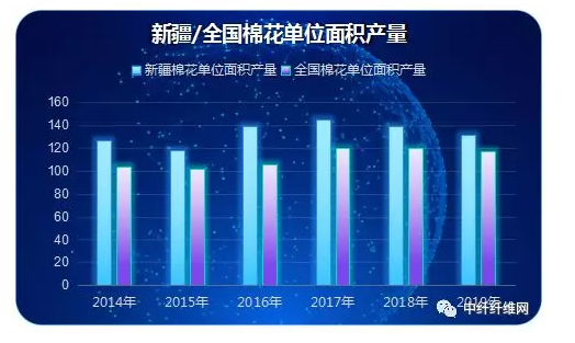 2017年4月份,国务院发布了《关于建立粮食生产功能区和重要农产品生产保护区的指导意见》,其中以新疆为重点,黄河流域、长江流域主产区为补充,划定棉花生产保护区3500万亩。这进一步推动了棉花生产向新疆地区集中,形成优势产业。2019年全国棉花单产有所下降,主要是受灾害性气候的影响。在棉花生长关键期,风沙、高温、冰雹、低温冻害等自然灾害在主要产棉区新疆、河北、江西、山东、湖北等地时有发生,对棉花单产造成一定影响。