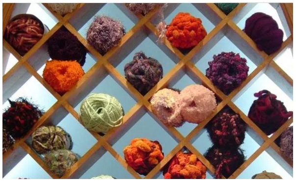 花式线:用特殊工艺制成,具有特种外观形态与色彩的纱线,包括花色线和花饰线。是由芯纱、饰纱和固纱在花色捻线机上加捻形成,表面具有纤维结、竹节、环圈、辫子、螺旋、波浪等特殊外观形态或颜色。